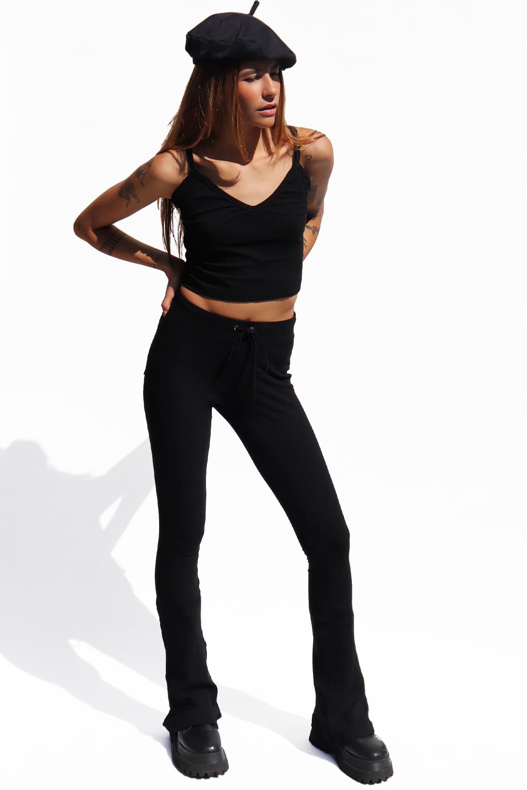 CALÇA PEGGY FLARE MALHA CANELADA- Preço regular