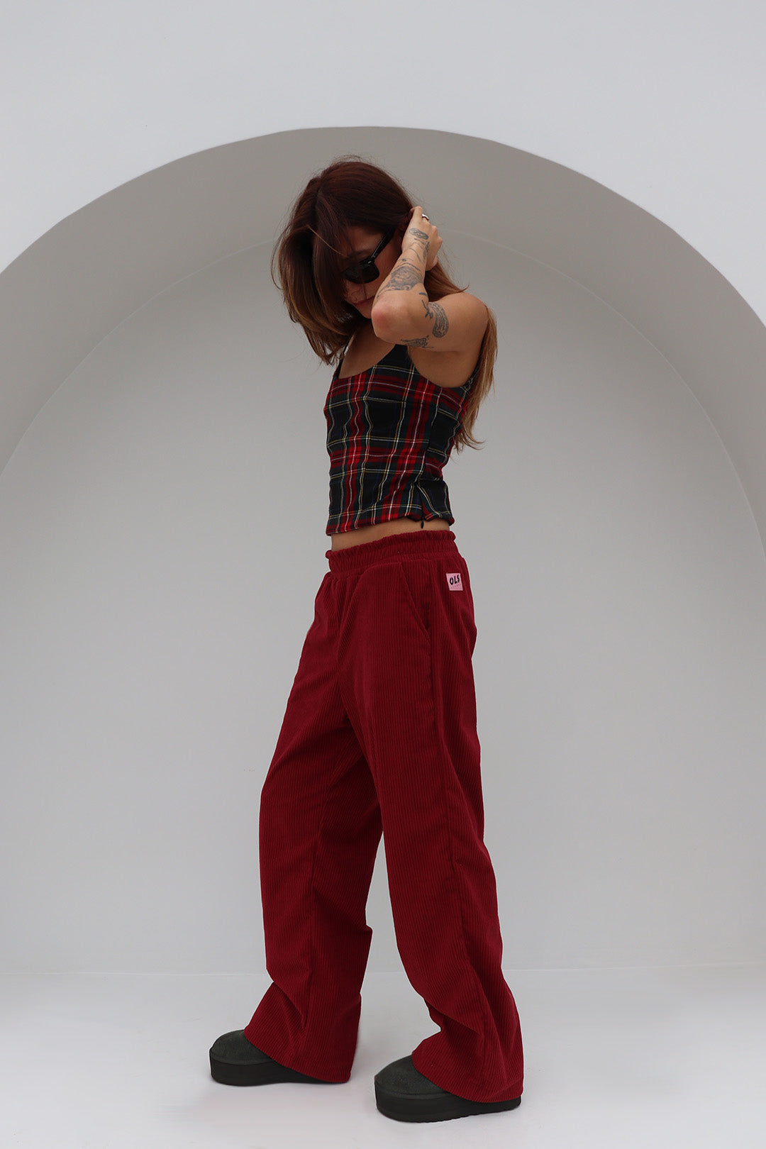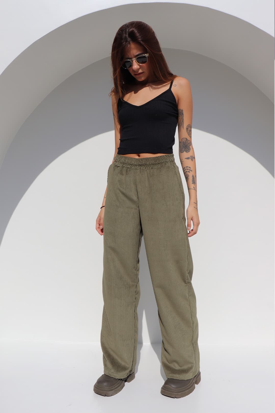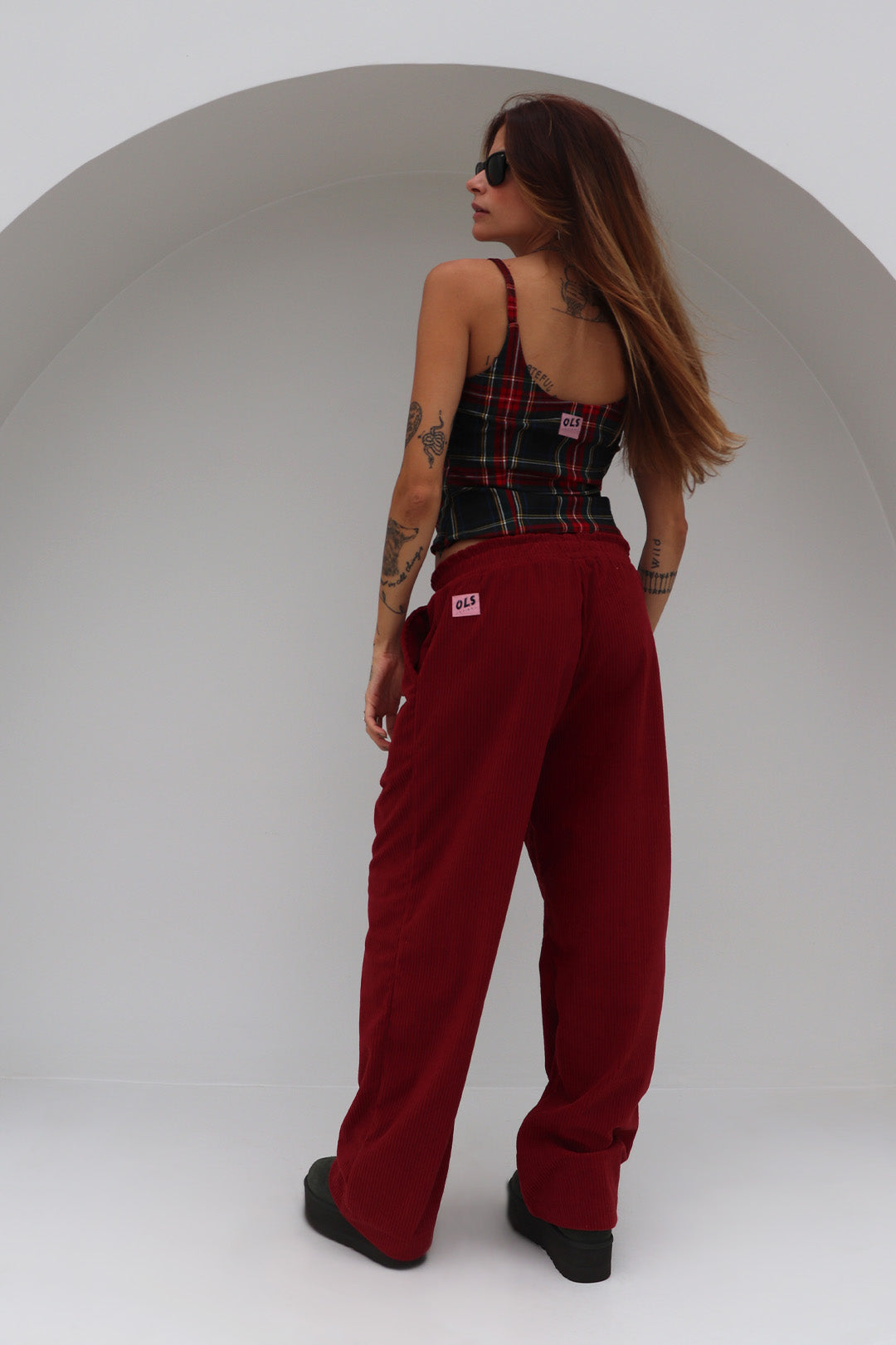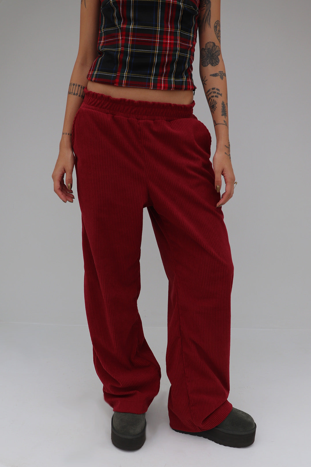 De veludo cotelê, com toque macio e caimento folgado, ela é comfy, mas com atitude.