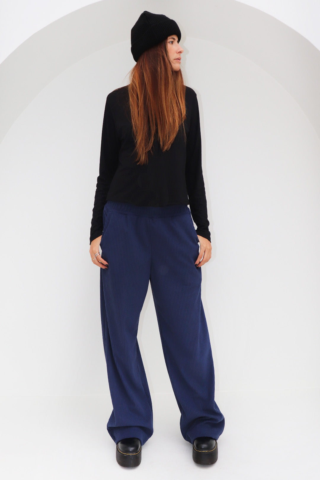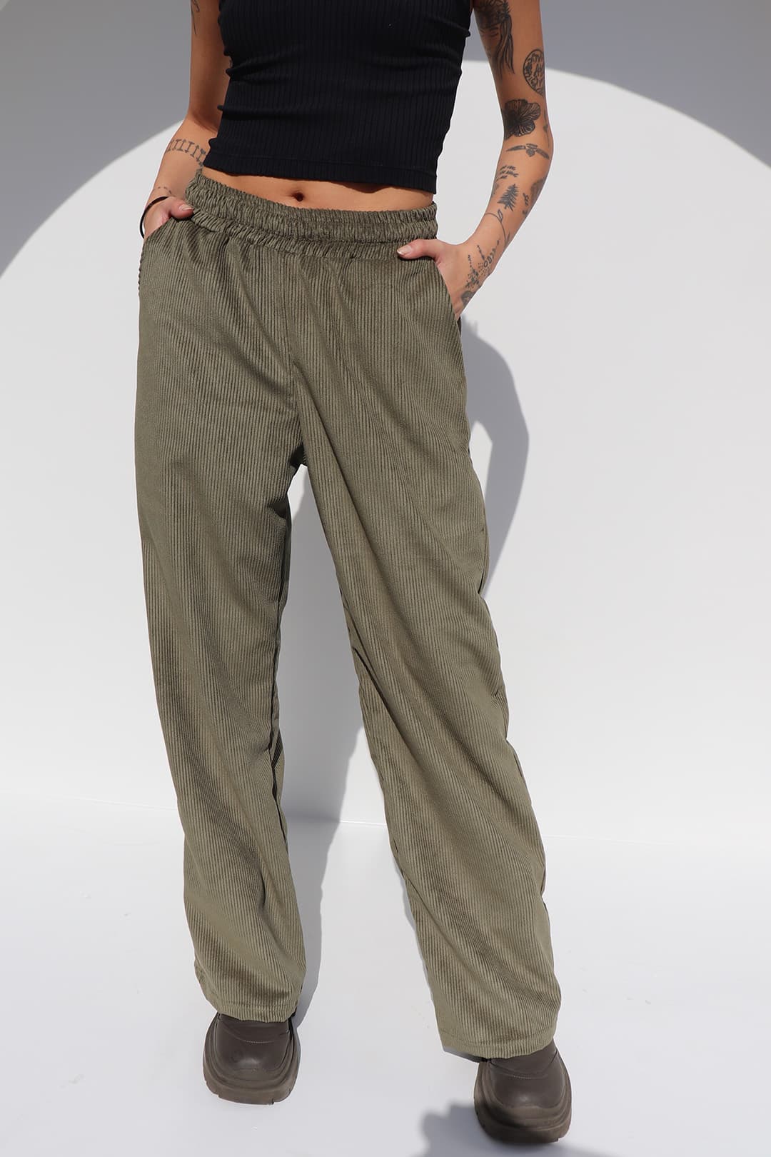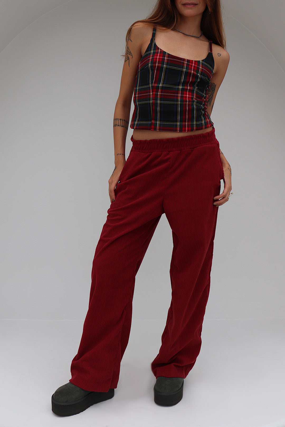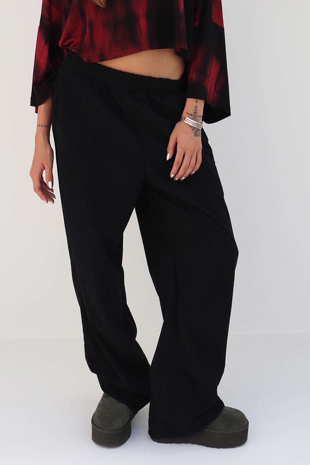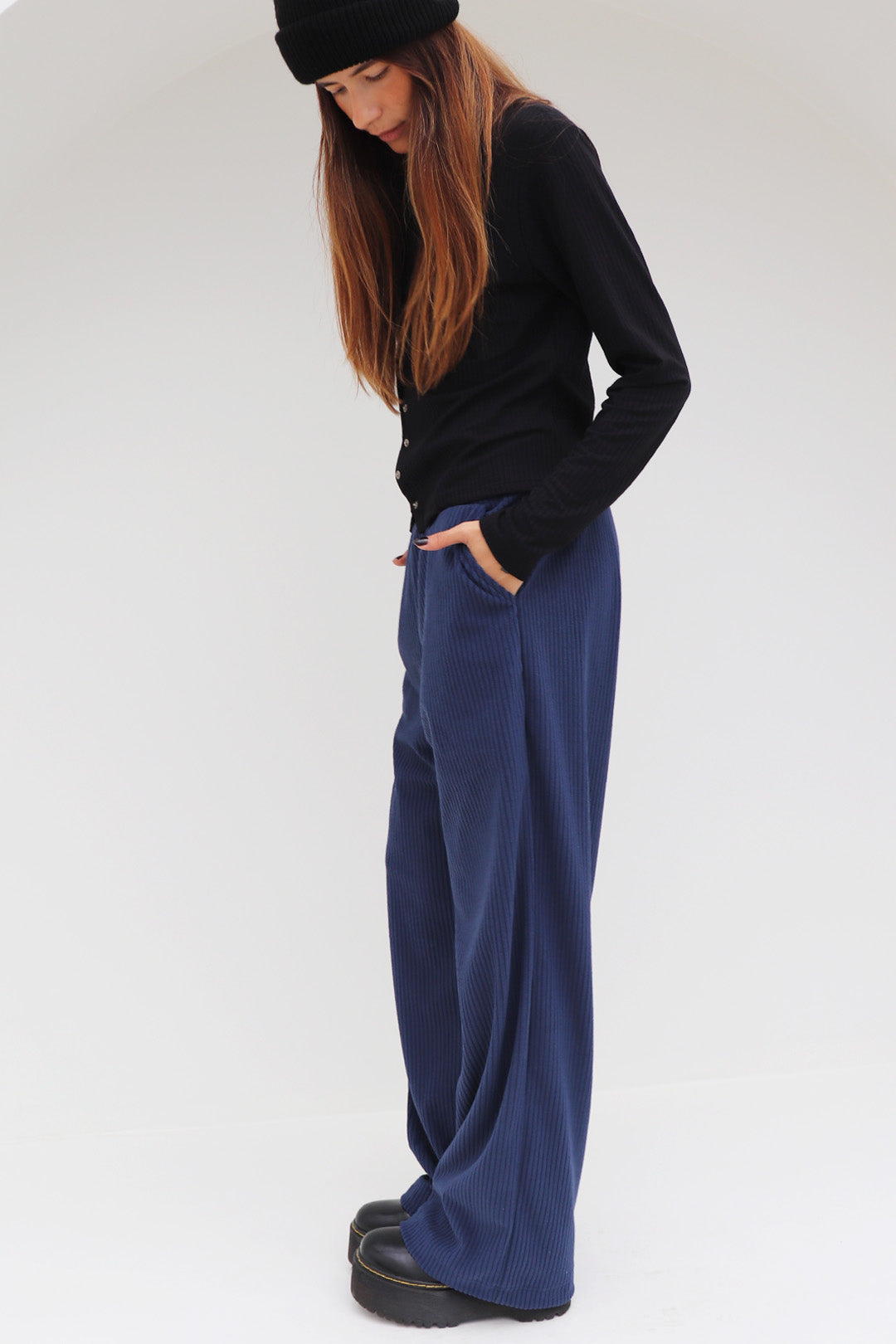 De veludo cotelê, com toque macio e caimento folgado, ela é comfy, mas com atitude.