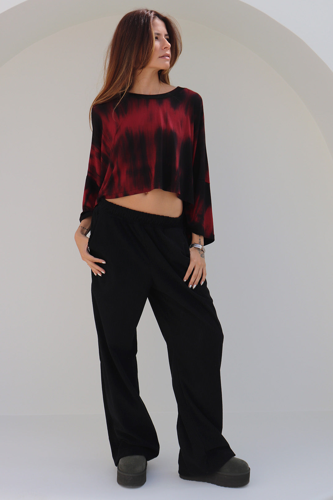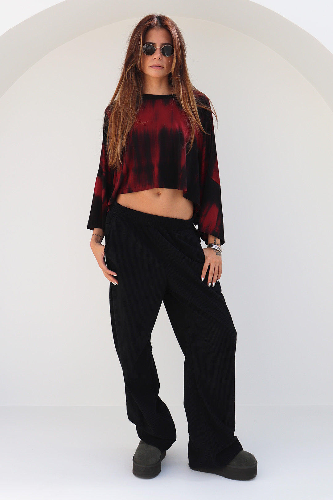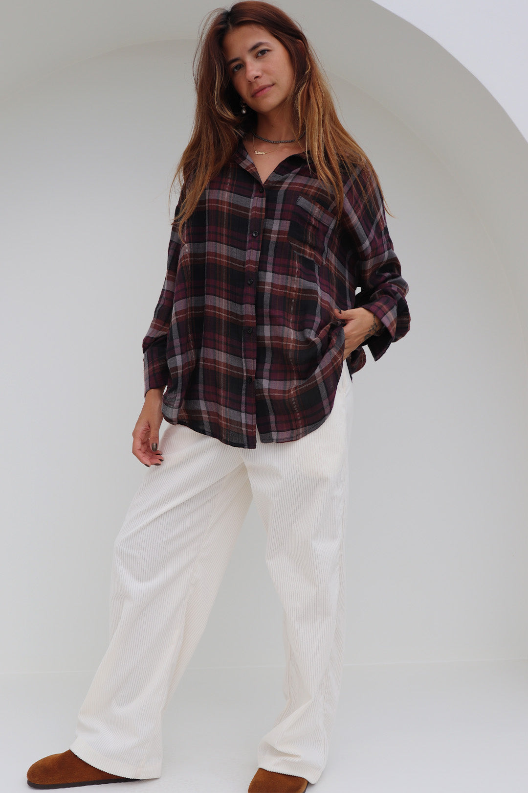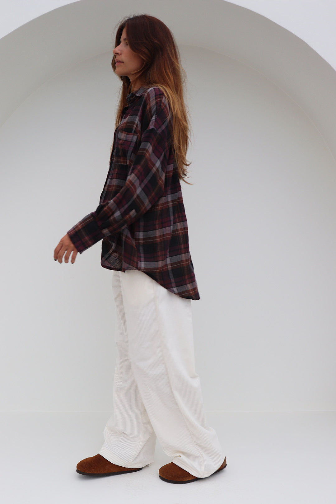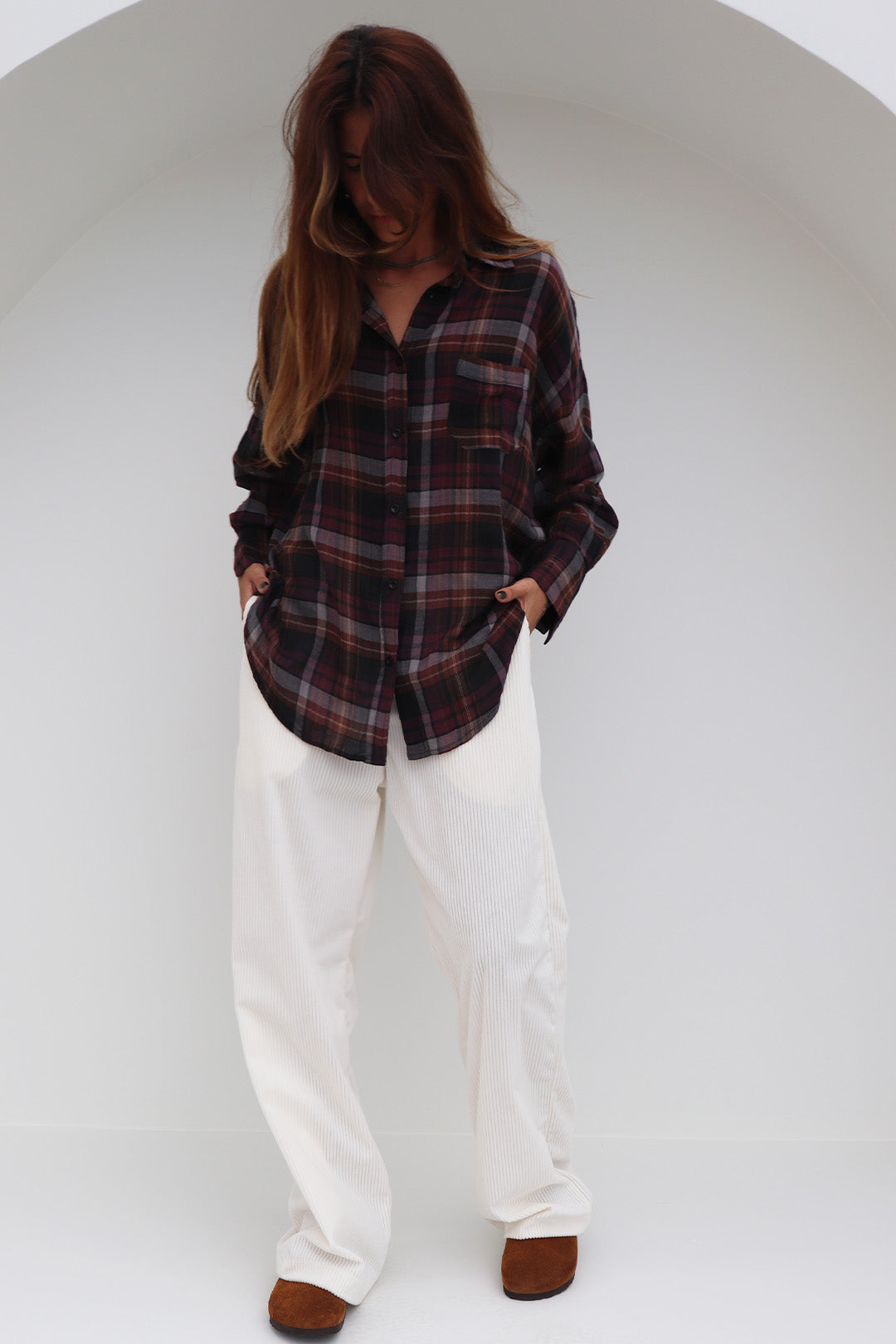 De veludo cotelê, com toque macio e caimento folgado, ela é comfy, mas com atitude.